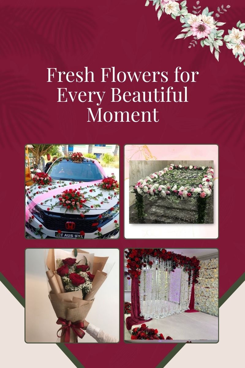 From bridal accessories and wedding décor to everyday bouquets and special-event arrangements, our flowers reflect grace, purity, and timeless beauty. Each design is carefully handcrafted using fresh blooms and premium materials, ensuring every creation speaks from the heart.