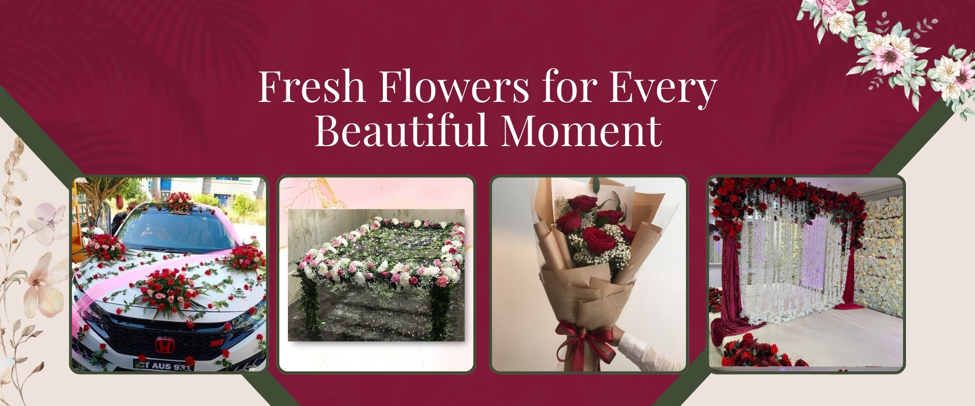 Loved the car and room decoration. Fresh flowers, neat work, and very elegant design. Highly satisfied!