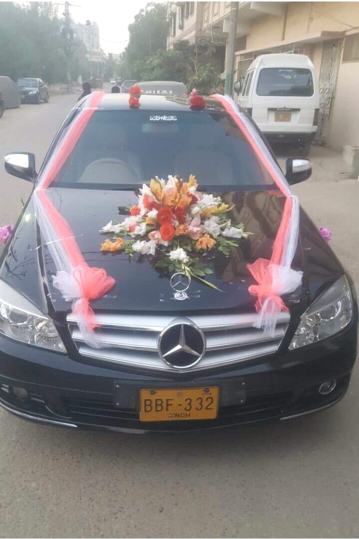 Achieve a balanced and sophisticated bridal look with our Fresh Peach and Orange Rose Centerpiece with White and Coral Tulle. This design is crafted for those who want to move beyond traditional red and white, opting instead for a warm, sunset-inspired palette that radiates joy and modern elegance. The focal point is a dense, multi-layered centerpiece positioned prominently on the hood, featuring a premium blend of peach roses, orange lilies, and white gladiolus.