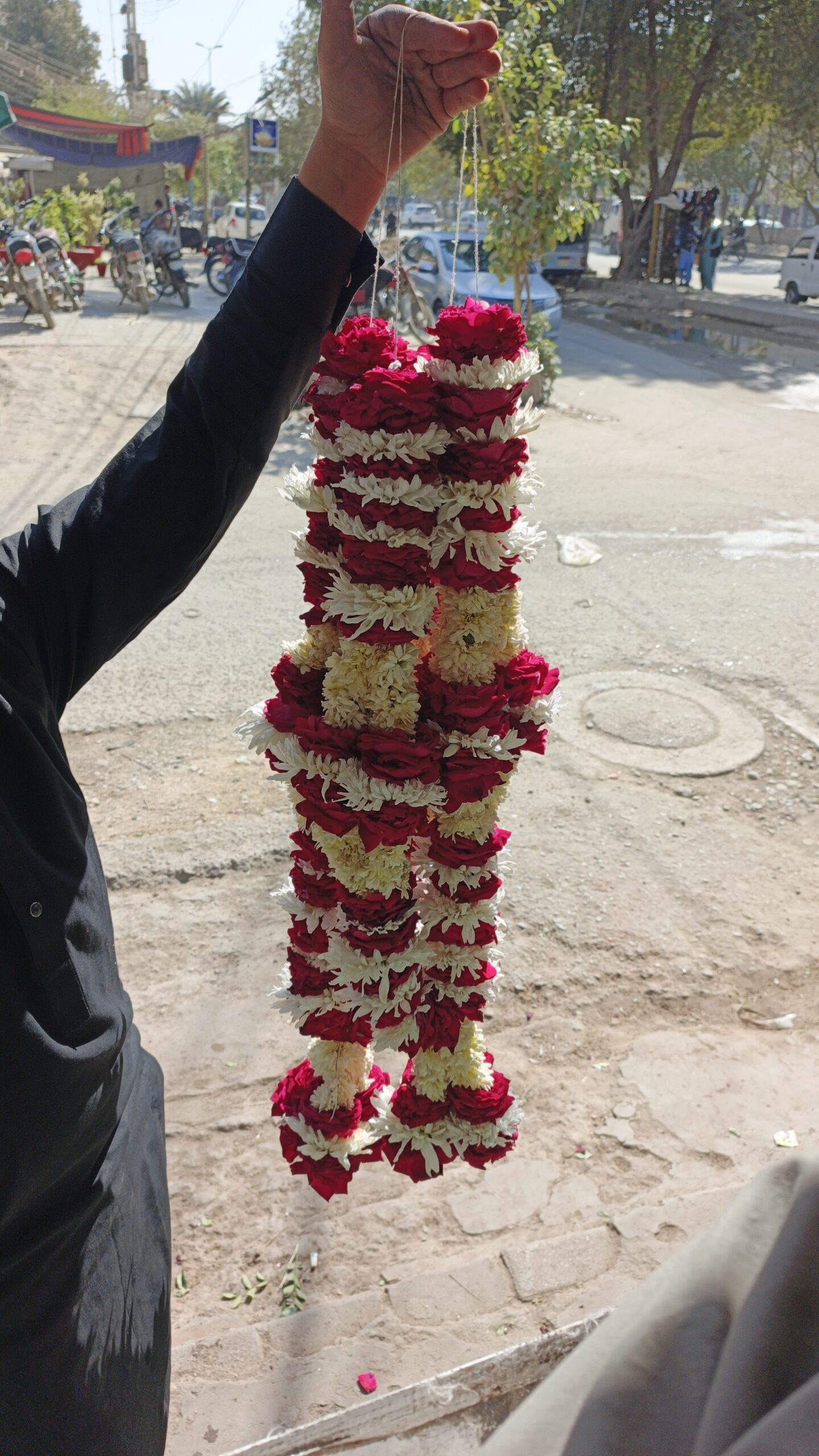 The dual-toned pattern is repeated meticulously throughout the length of the garland to ensure a symmetrical and balanced aesthetic from every angle. Crafted on a sturdy yet flexible core, this Haar drapes majestically over the shoulders, making it an ideal choice for grooms, VIP guests, or prestigious welcoming ceremonies. The combination of the fresh, earthy scent of chrysanthemums with the soft, romantic aroma of red roses ensures a memorable sensory experience for the wearer.