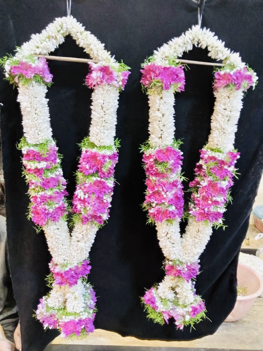 Fresh flower garlands should be lightly misted or refrigerated until use.