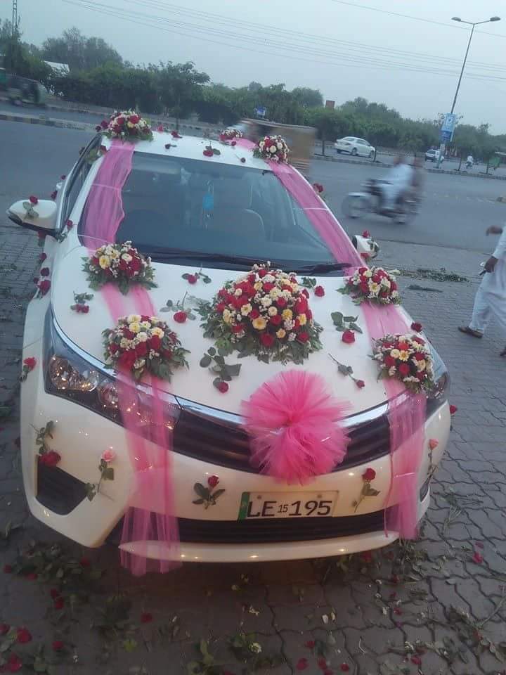 The design features several lush floral bouquets strategically placed across the hood, roof, and doors. Interconnecting these bouquets are flowing strips of premium pink net fabric, which add a sense of movement and softness to the car’s metallic finish. This combination of vibrant florals and soft textiles creates a multi-dimensional look that pops beautifully in wedding videos and outdoor ceremonies.