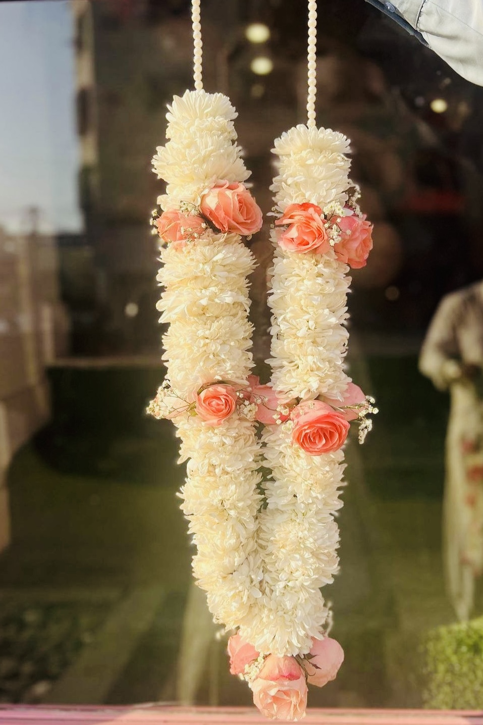 PINK AND WHITE DAISY HAAR GARLAND WITH BABY BREATH