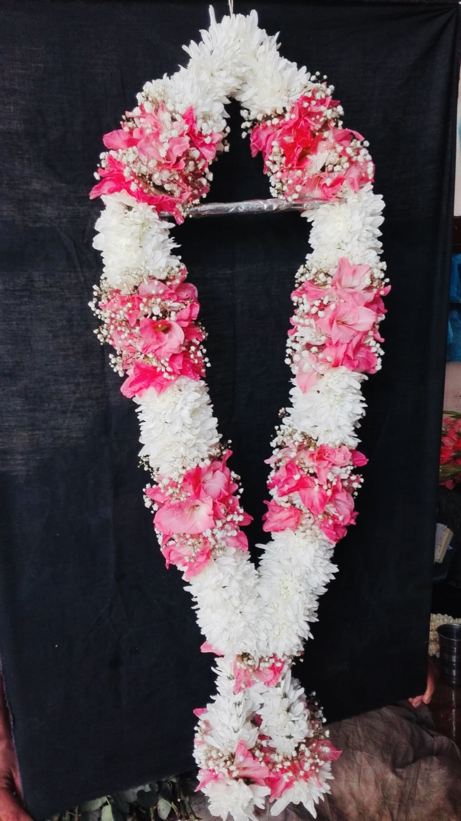 PINK GLADILOUS & WHITE DAISY HAAR [ GARLAND ] WITH BABAY BREATH