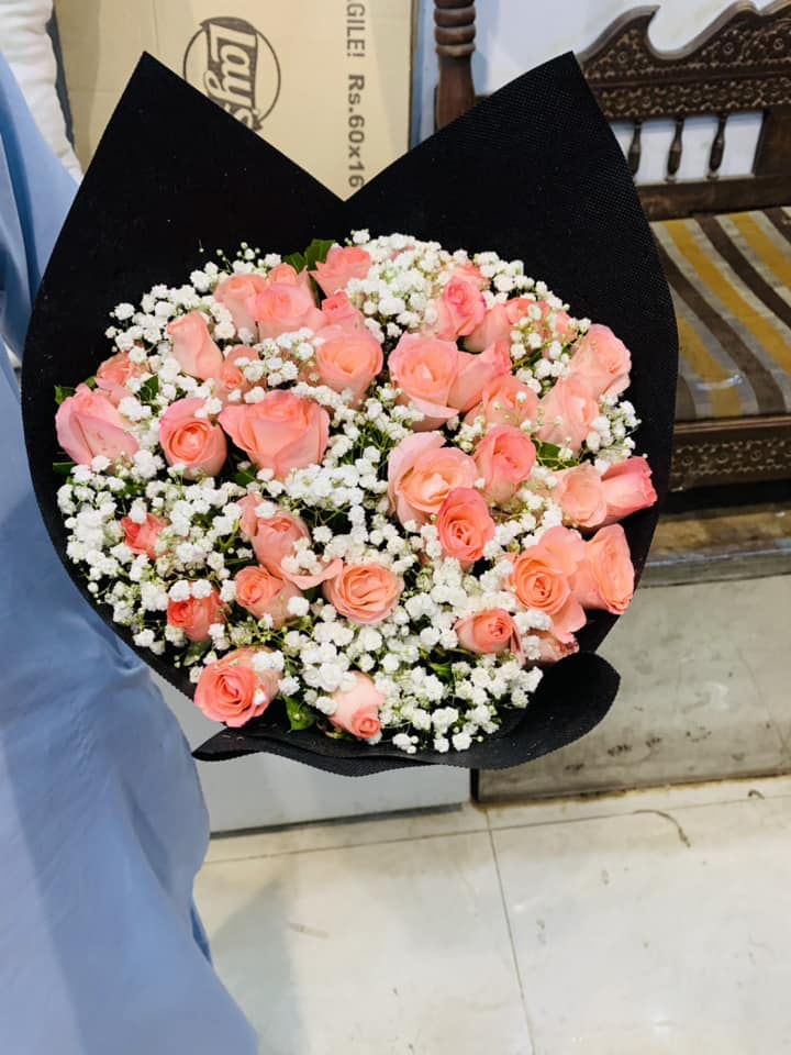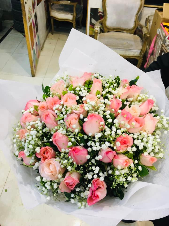 A romantic bouquet featuring soft pink roses and delicate baby’s breath, beautifully crafted to express love, grace, and heartfelt emotion.