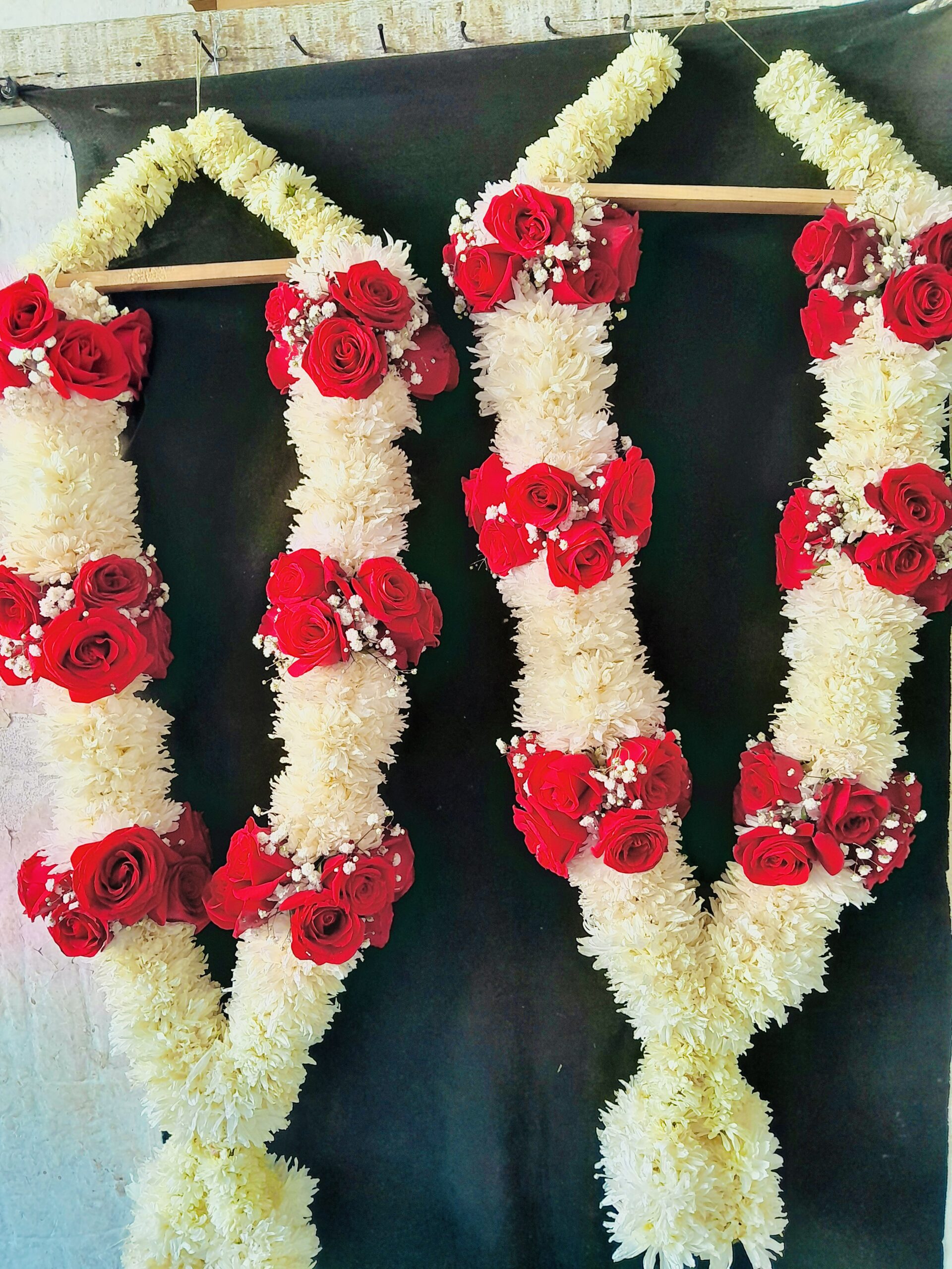 Fresh flower garlands should be kept cool and lightly misted to maintain freshness.